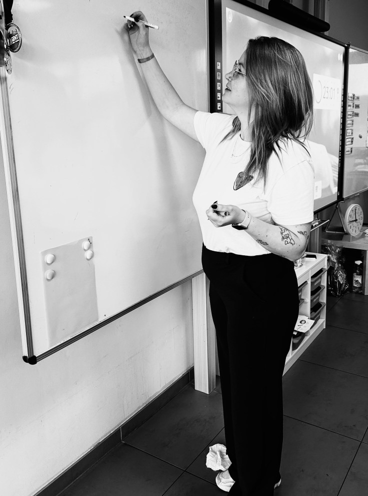 In mijn klas vind ik het belangrijk dat er een goede balans is tussen leren en plezier maken. Hier en daar een mopje maken gebeurt dus wel! Dit zorgt voor een aangename klassfeer. Ook streef ik naar zelfstandigheid.