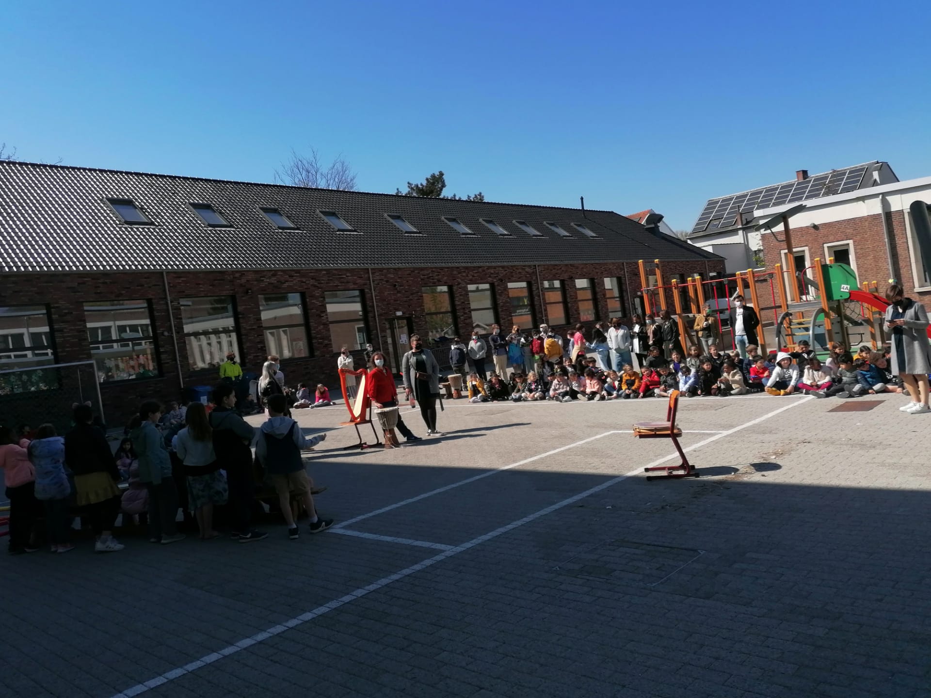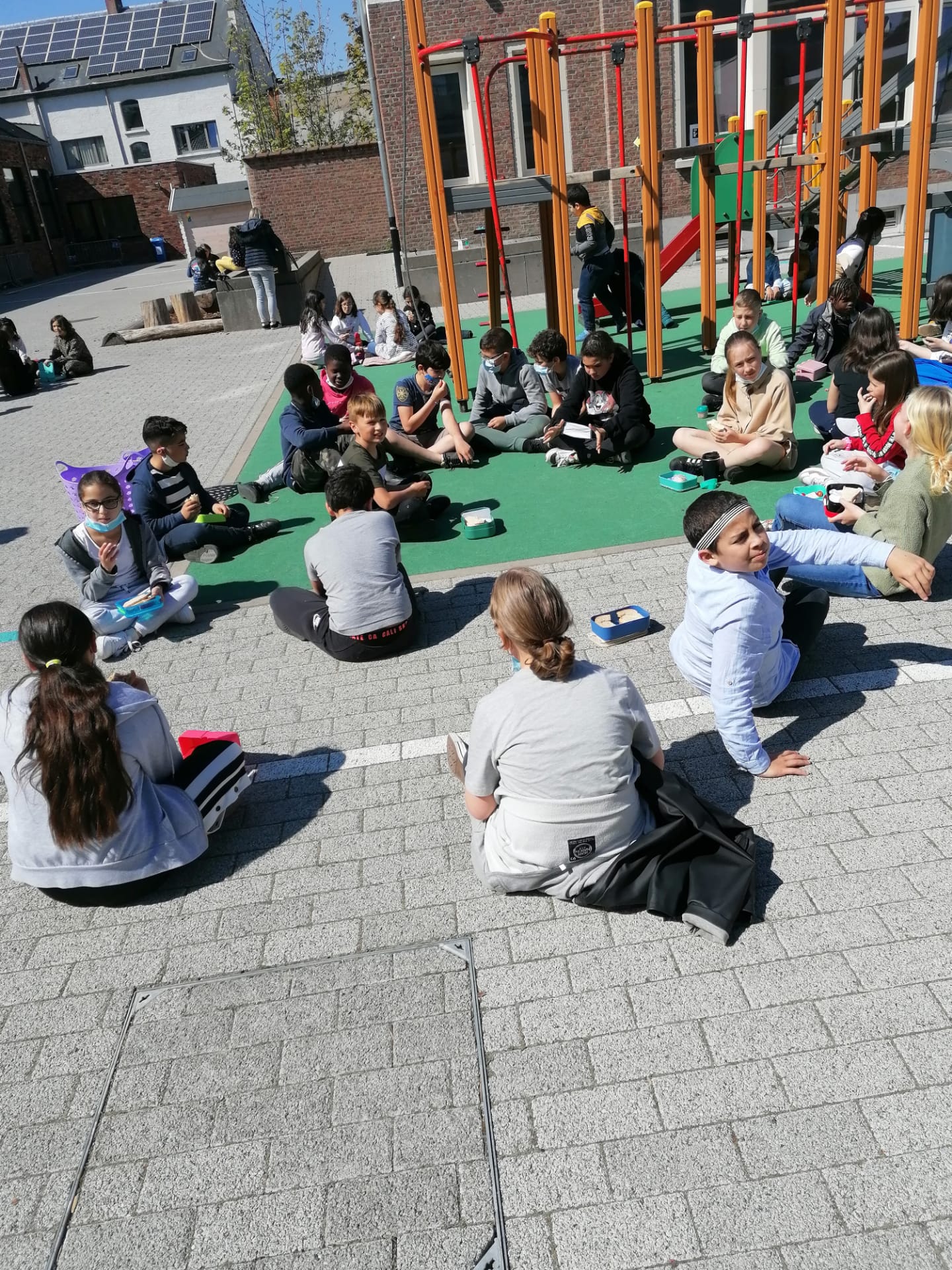 Bij mooi weer houden we een picknick op de speelplaats