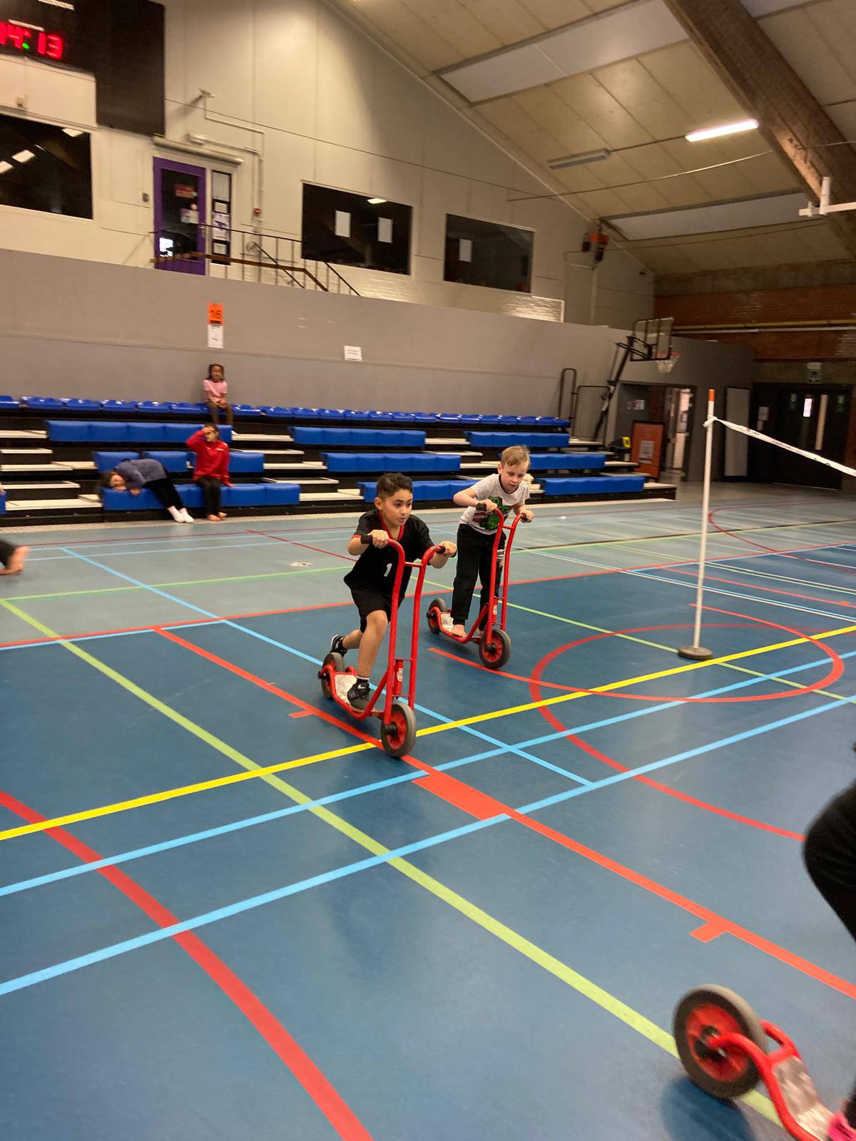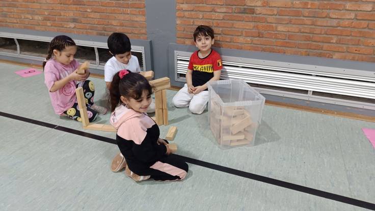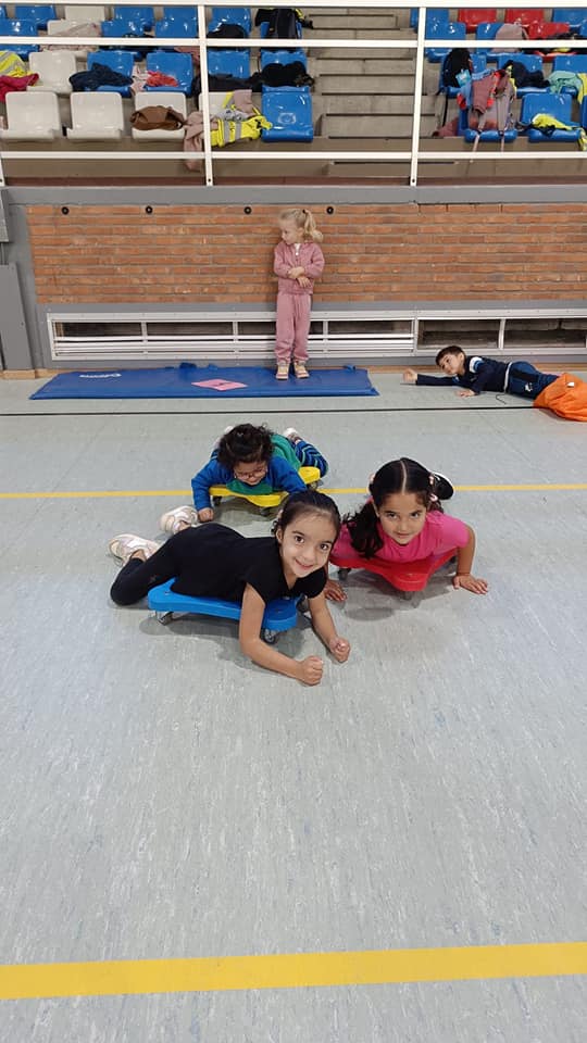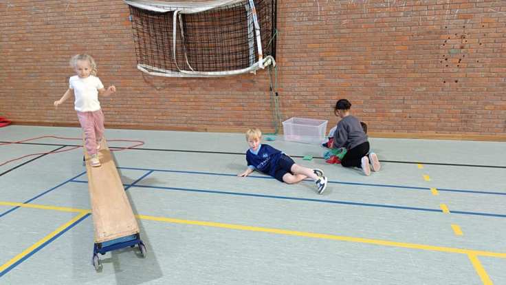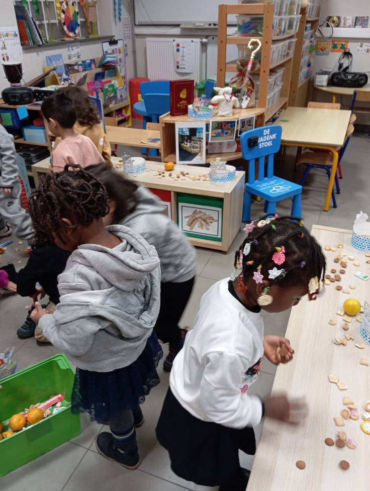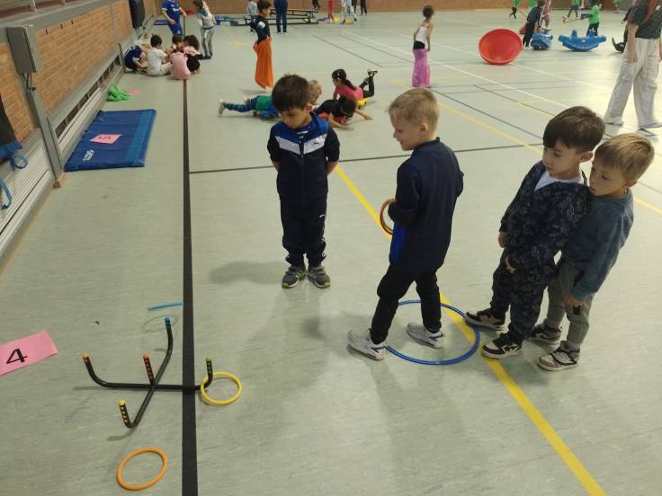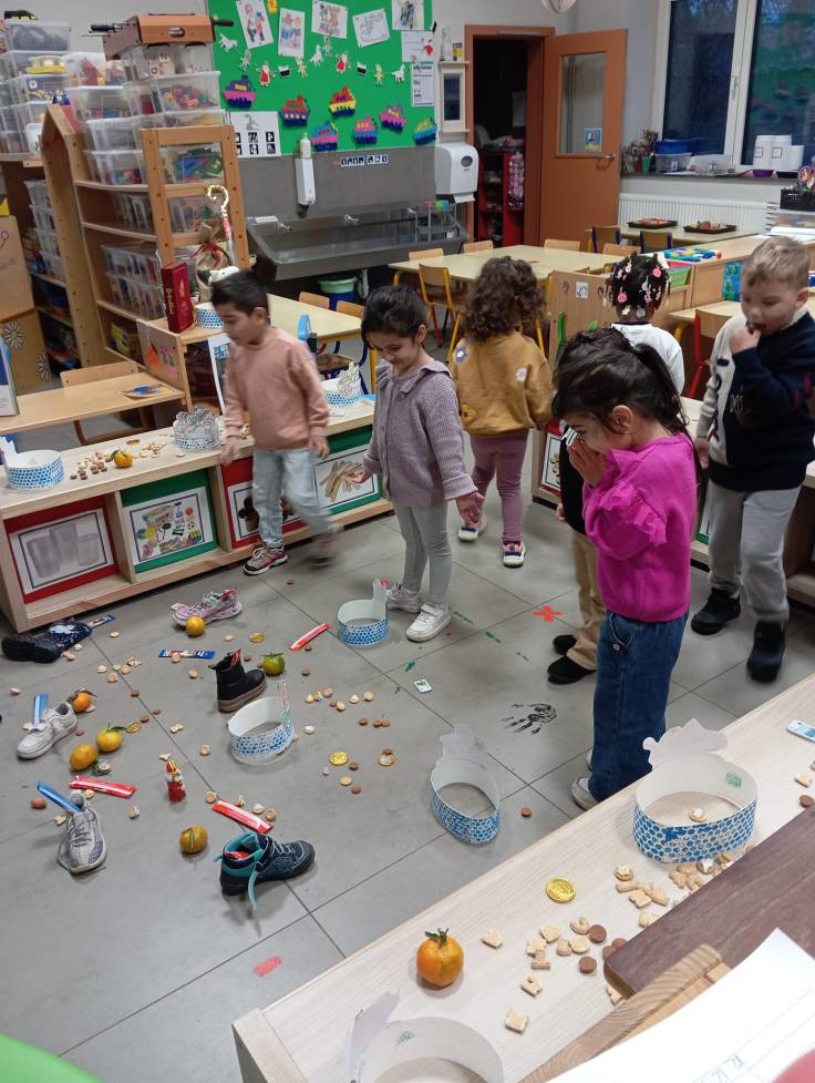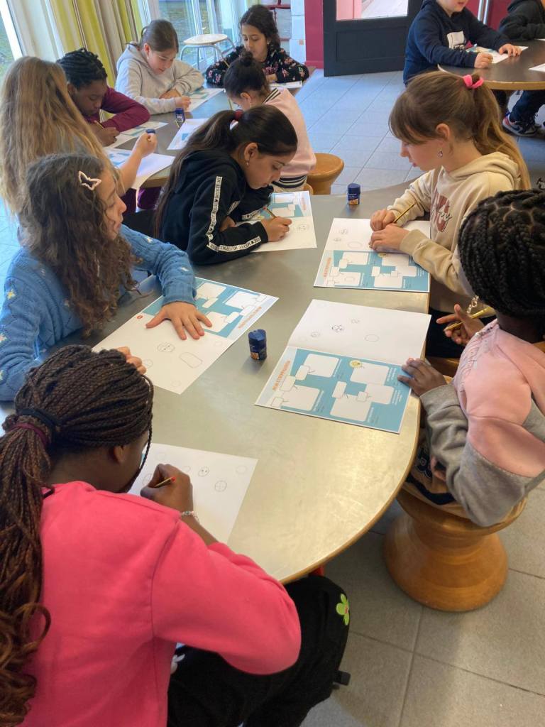 Het 3de leerjaar legde spelletjes uit aan de 3de kleuterklas en speelden deze samen: 123 piano, schaar-steen-papier en tik tak boem.