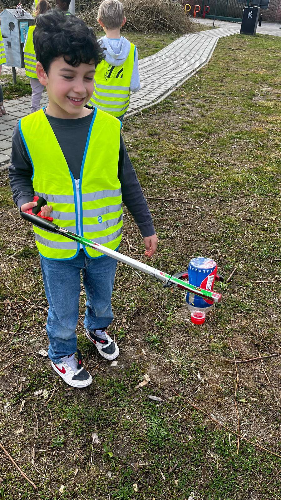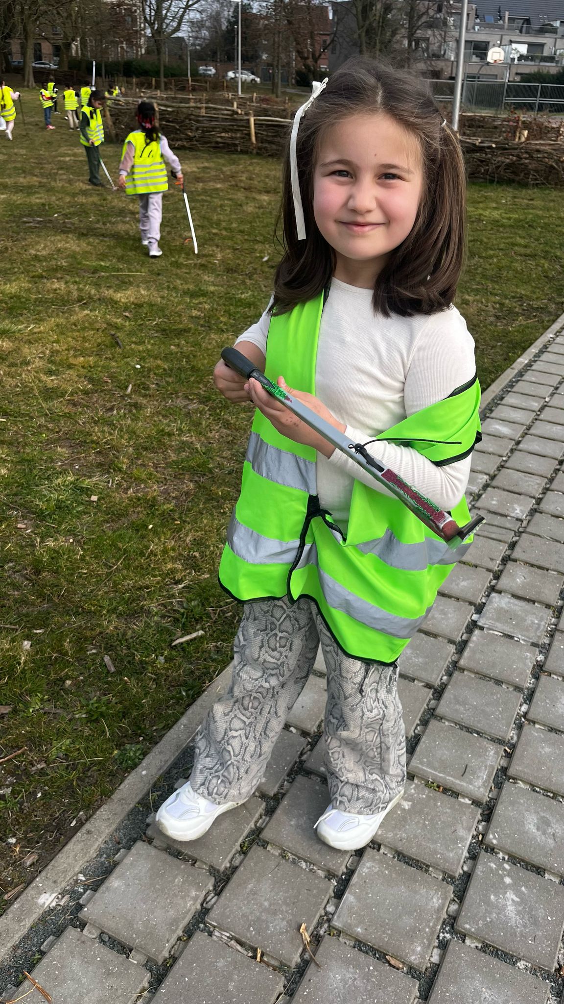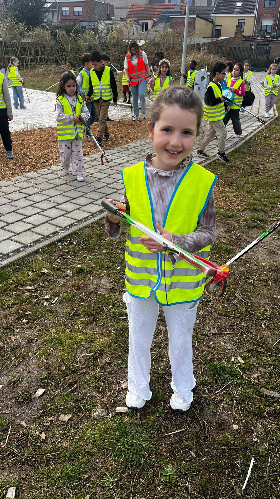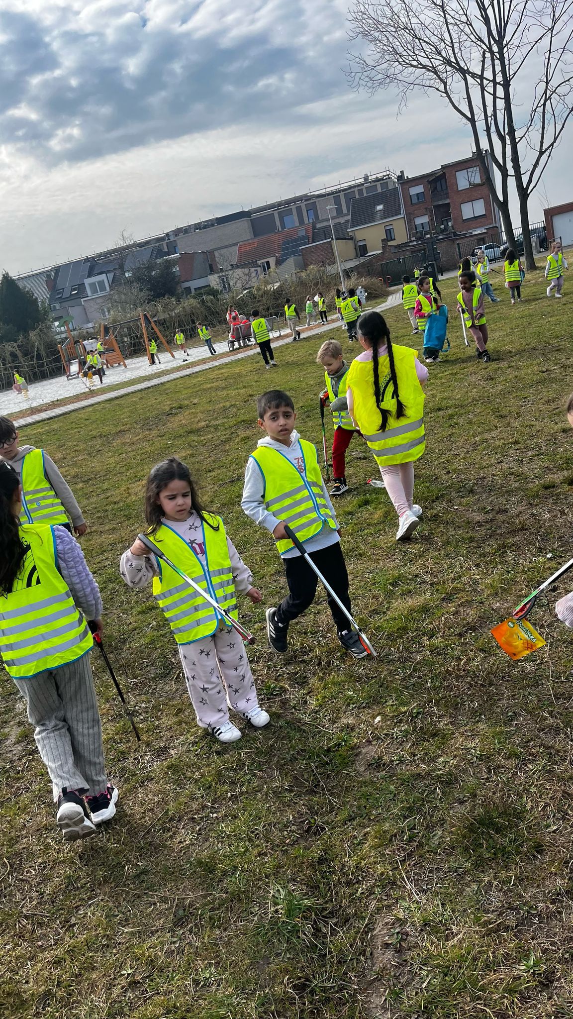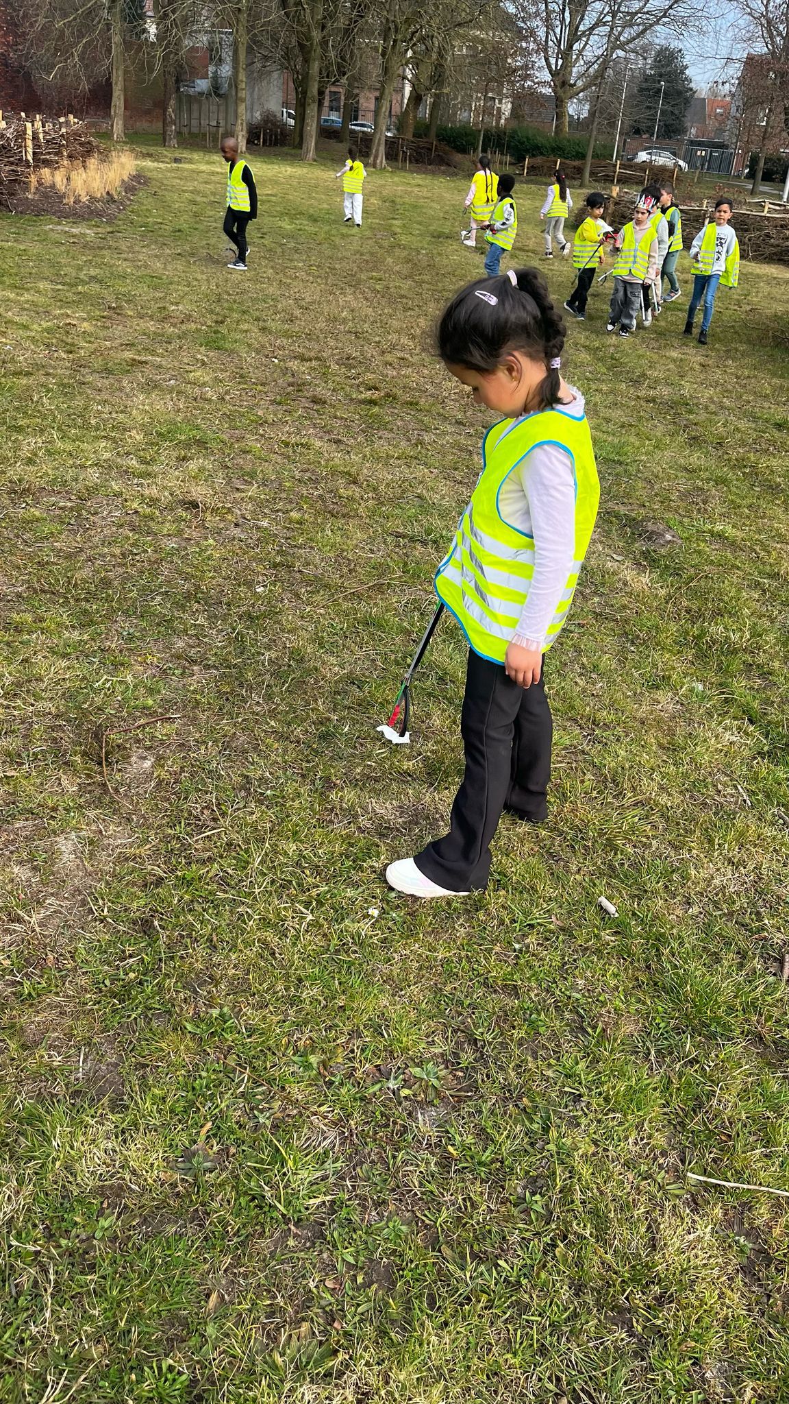 Het 1ste leerjaar stak flink hun handen uit de mouwen om de omgeving proper te maken!