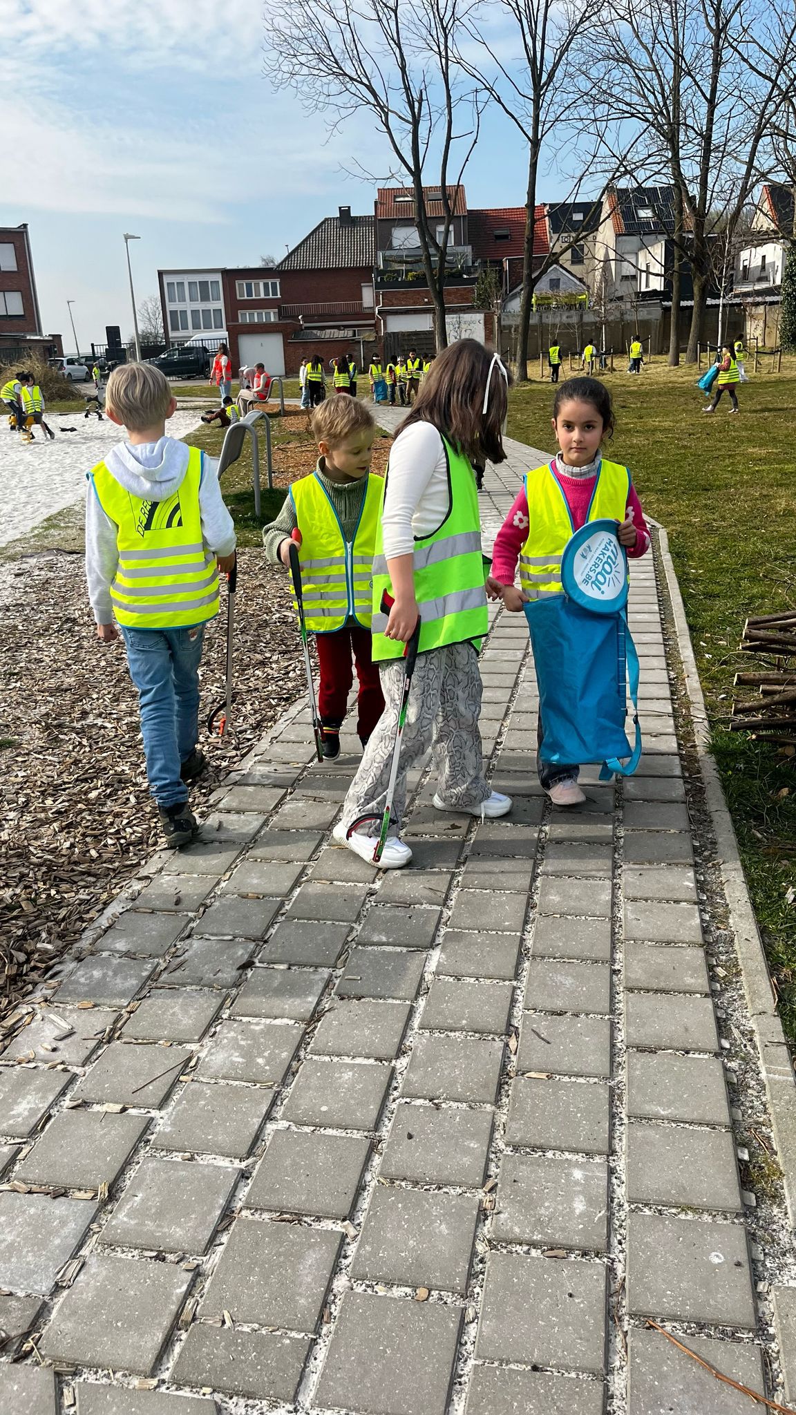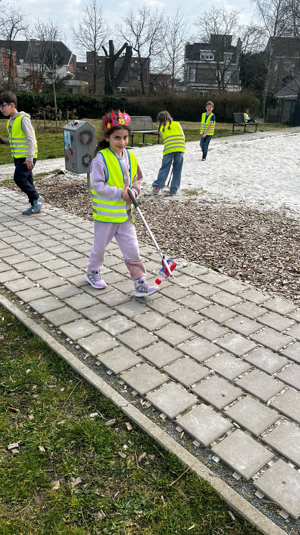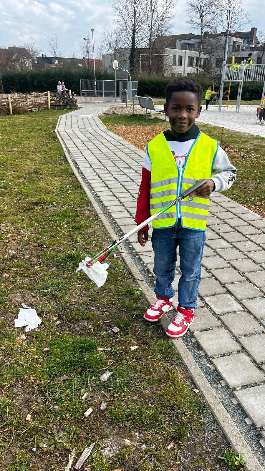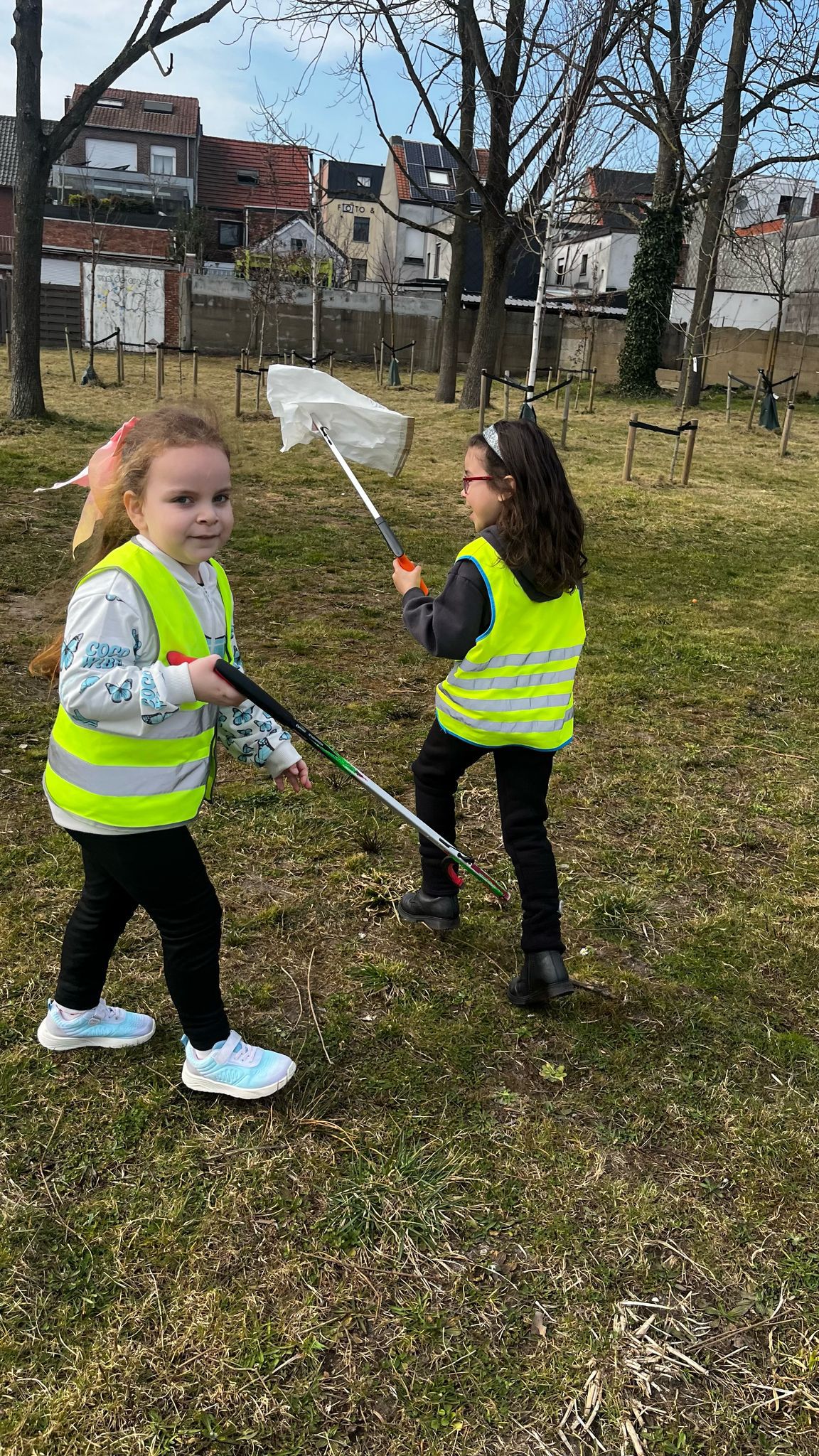Het 1ste leerjaar stak flink hun handen uit de mouwen om de omgeving proper te maken!