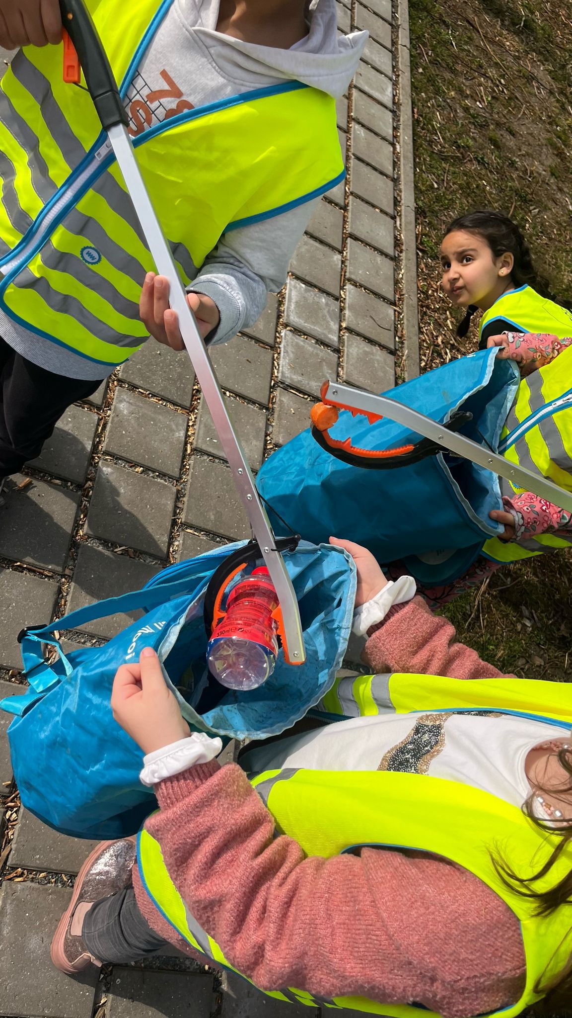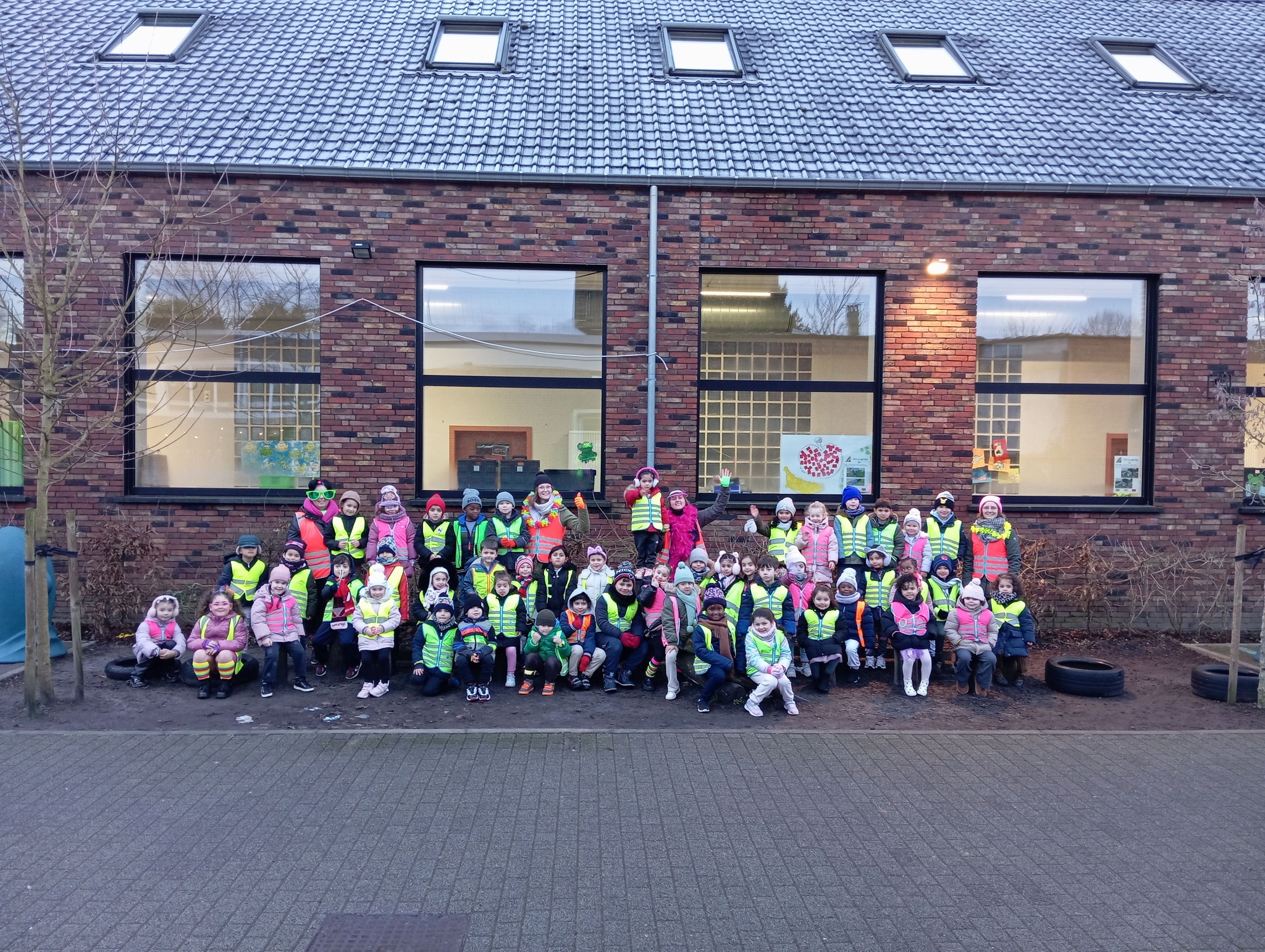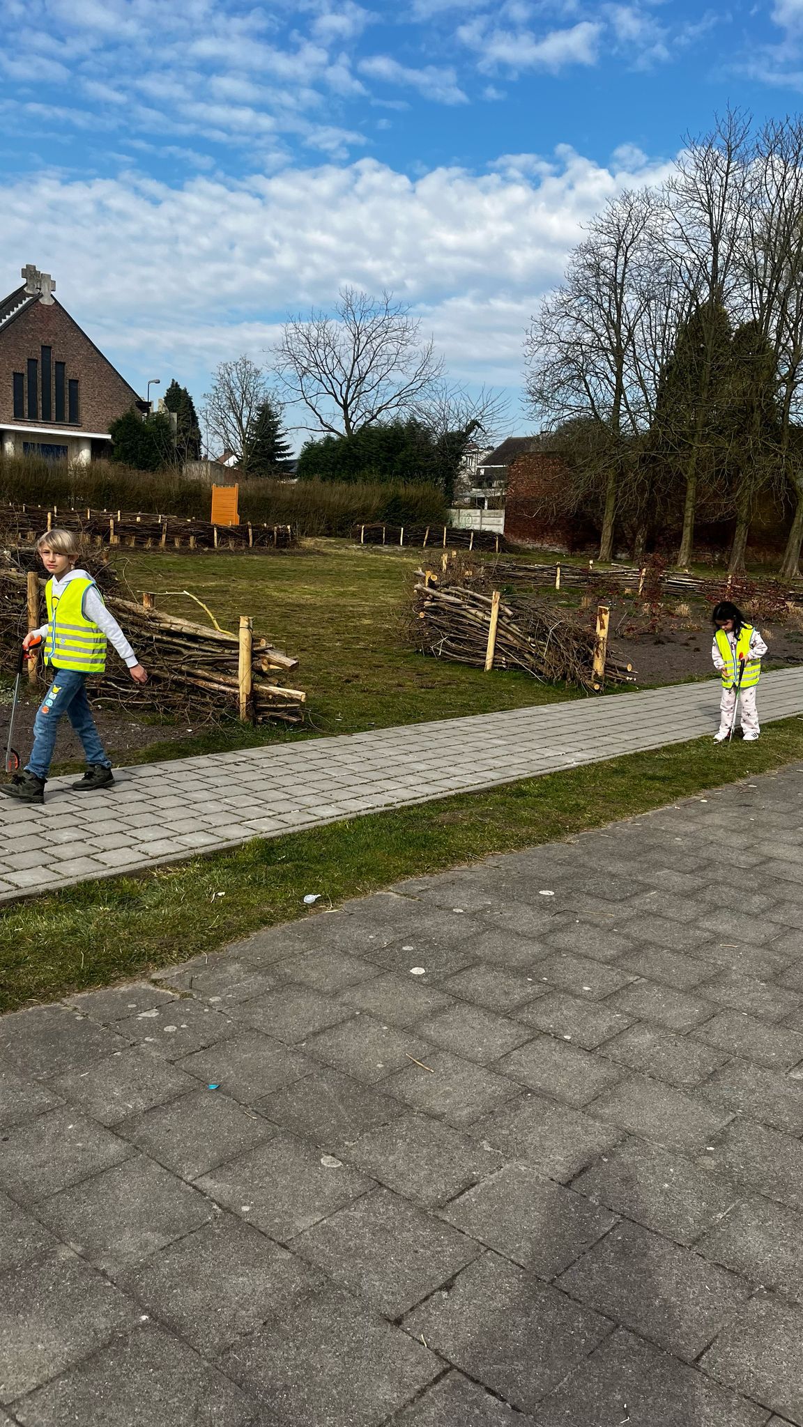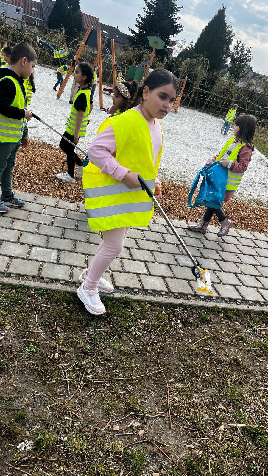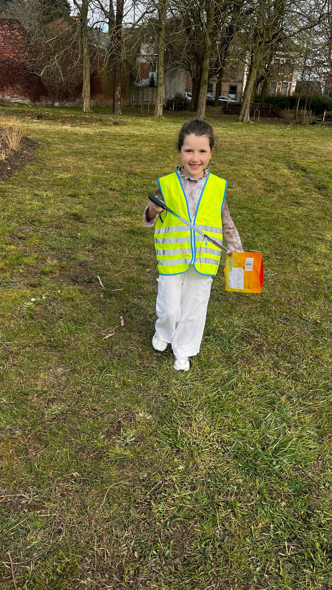 Het 1ste leerjaar stak flink hun handen uit de mouwen om de omgeving proper te maken!
