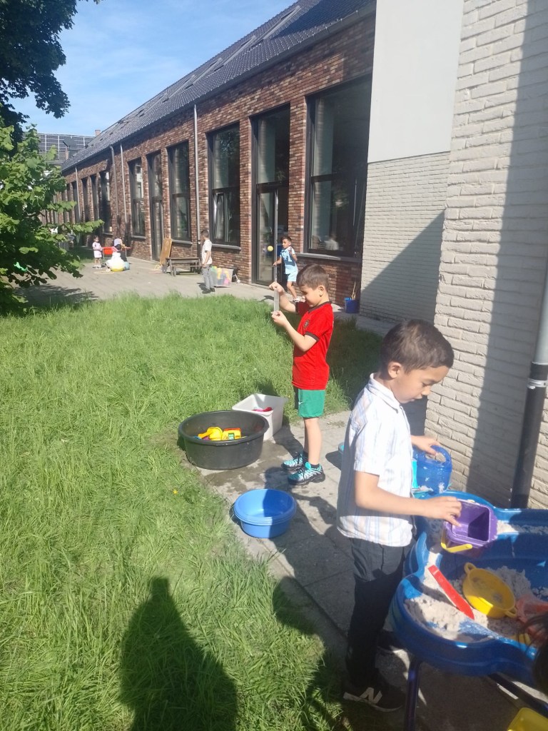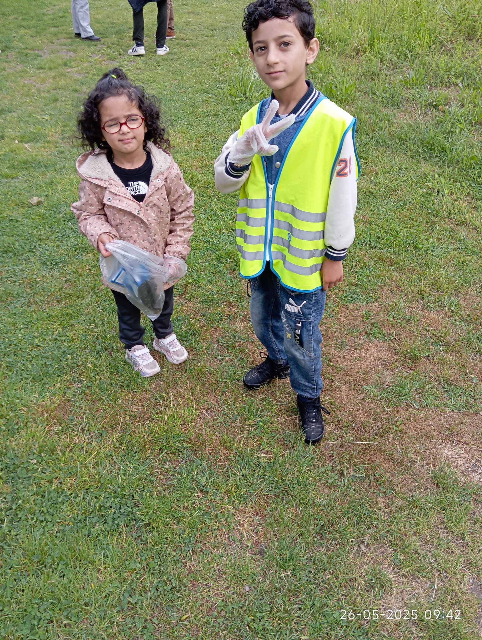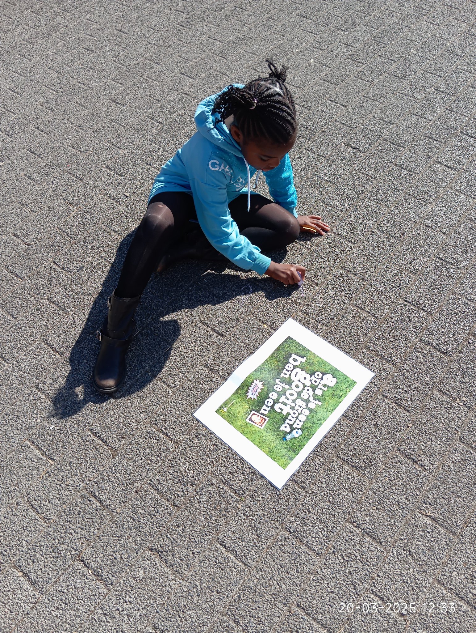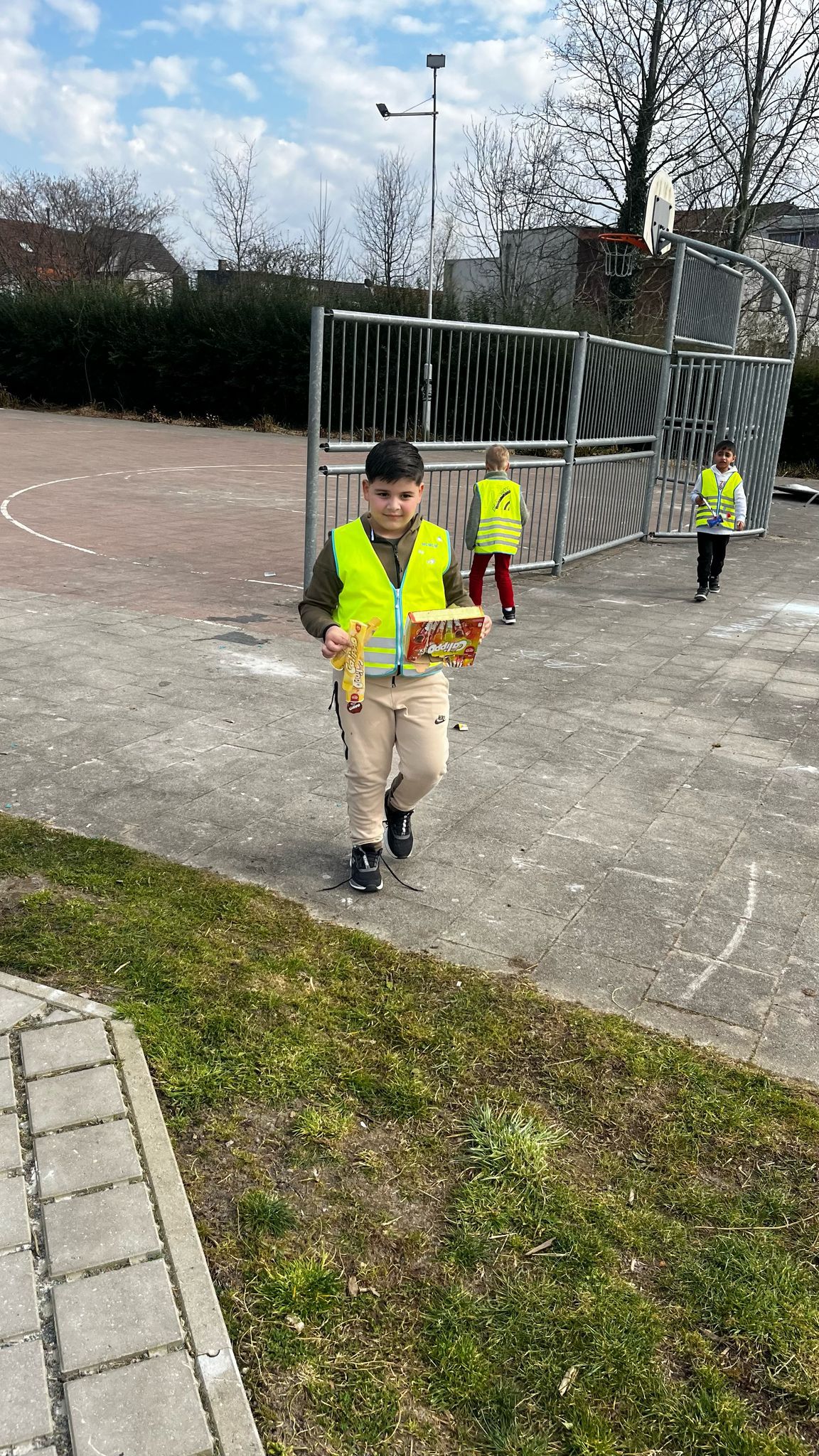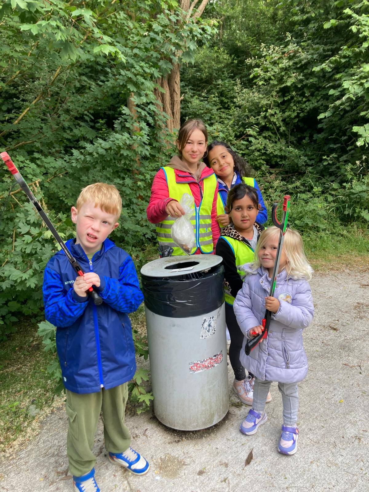 Het 1ste leerjaar stak flink hun handen uit de mouwen om de omgeving proper te maken!