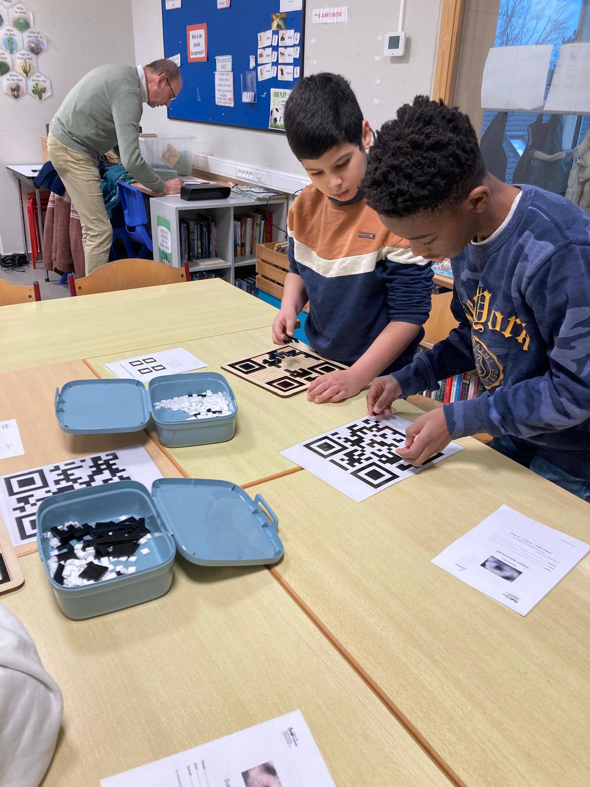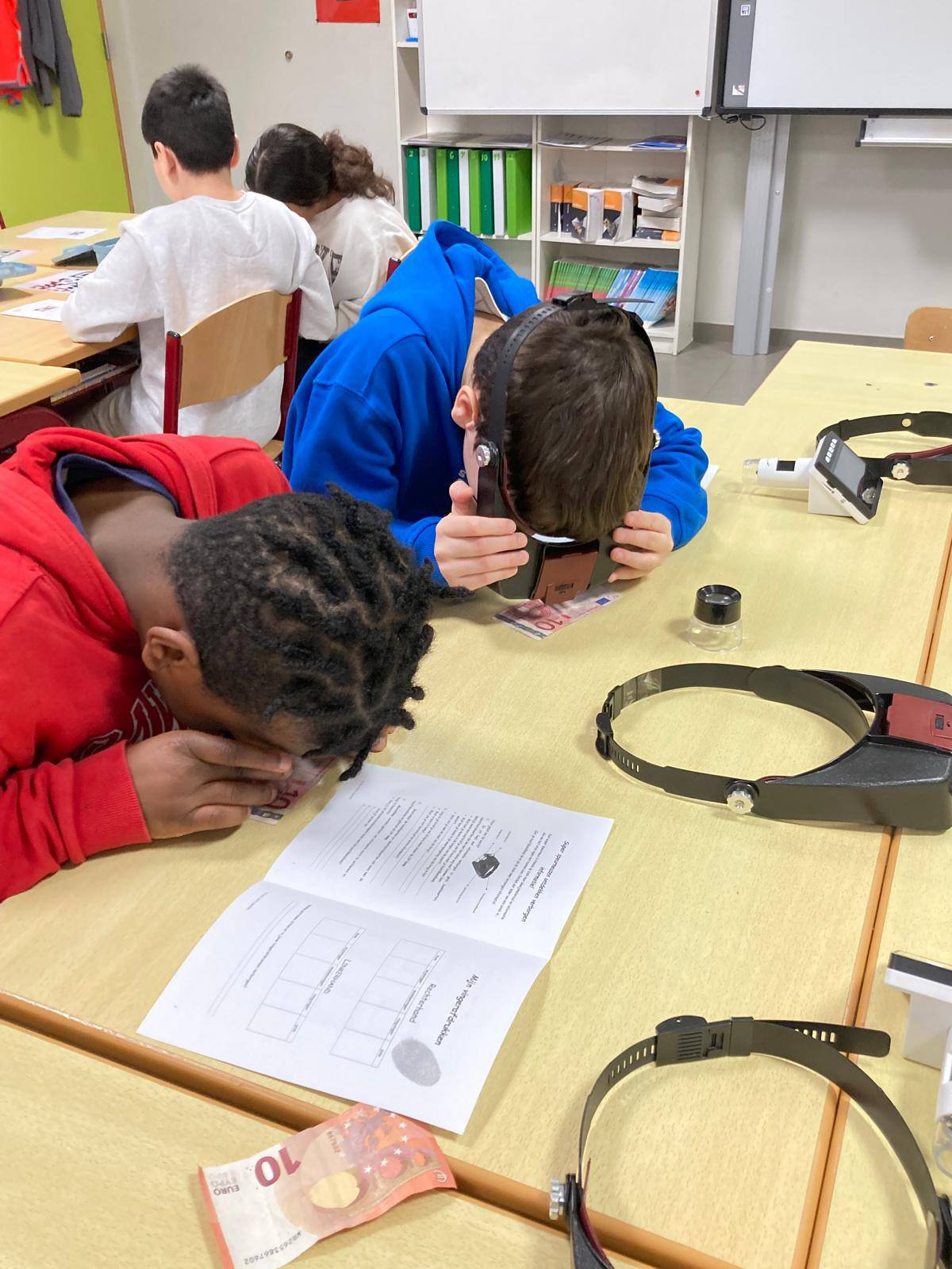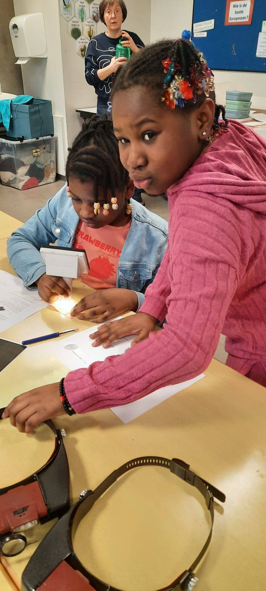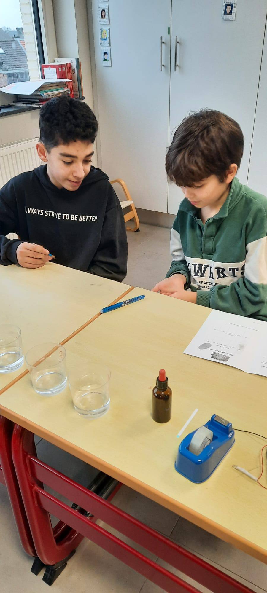 STEM workshop in het 5de leerjaar! Met een vergrootglas , microscoop en UV-lamp gingen ze op onderzoek. QR-codes werden ontleed, de kwaliteit van water werd onderzocht en ze maakten vingerafdrukken!