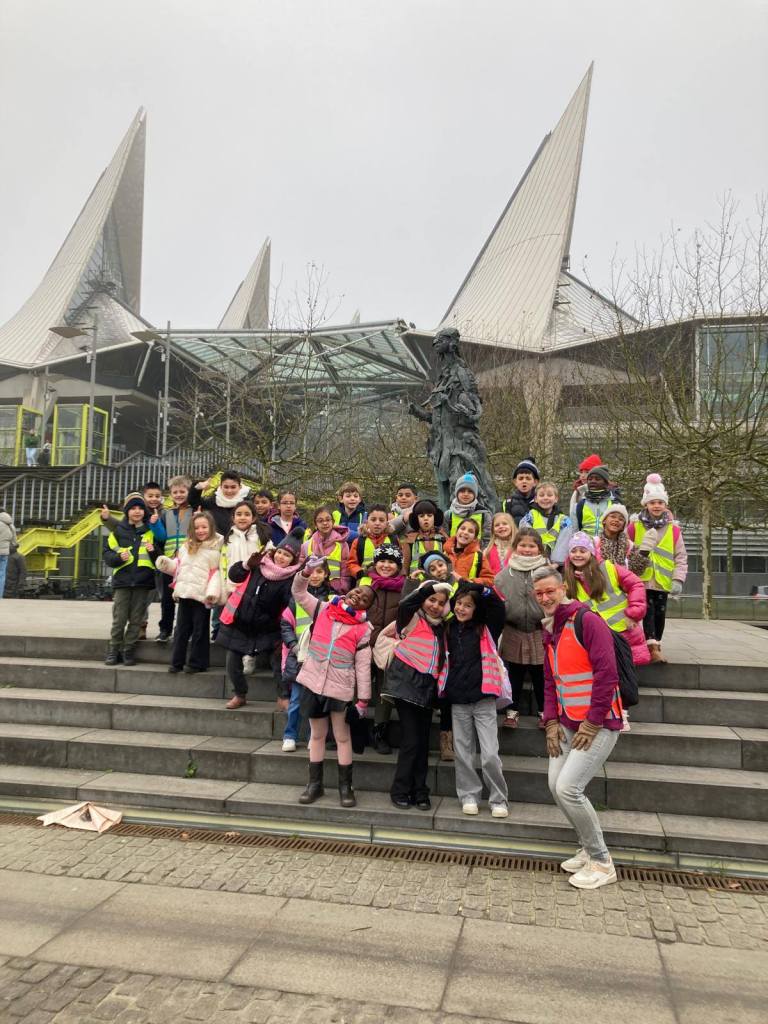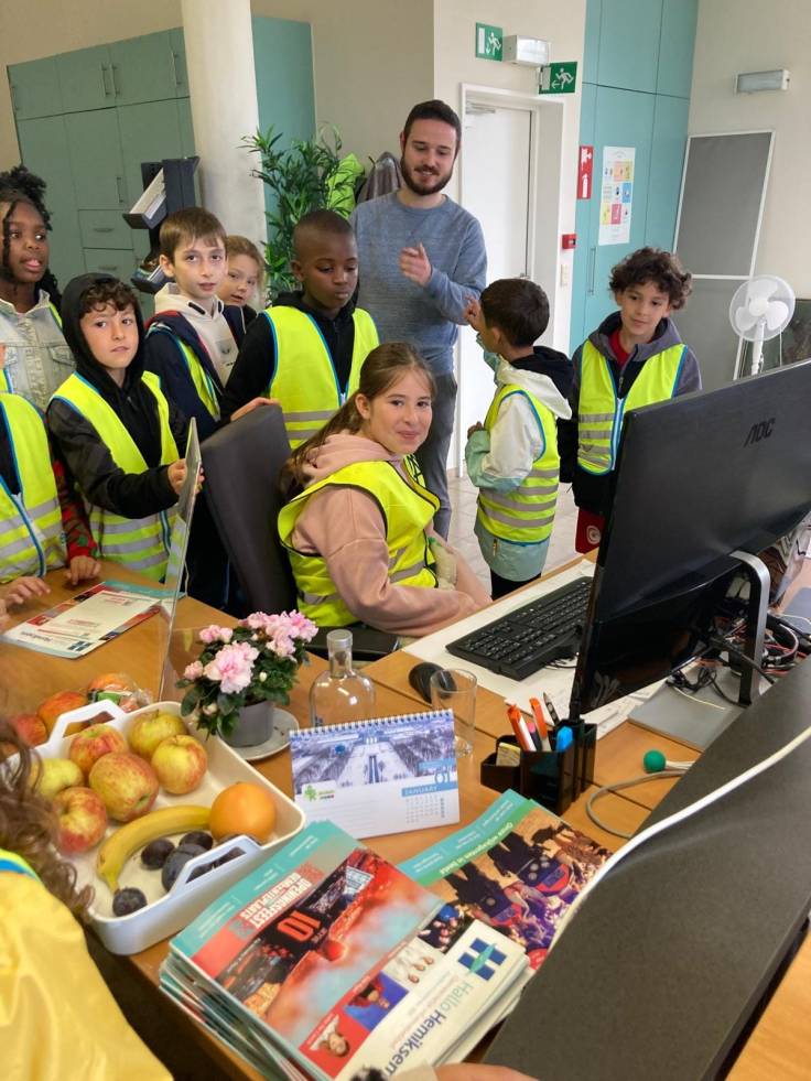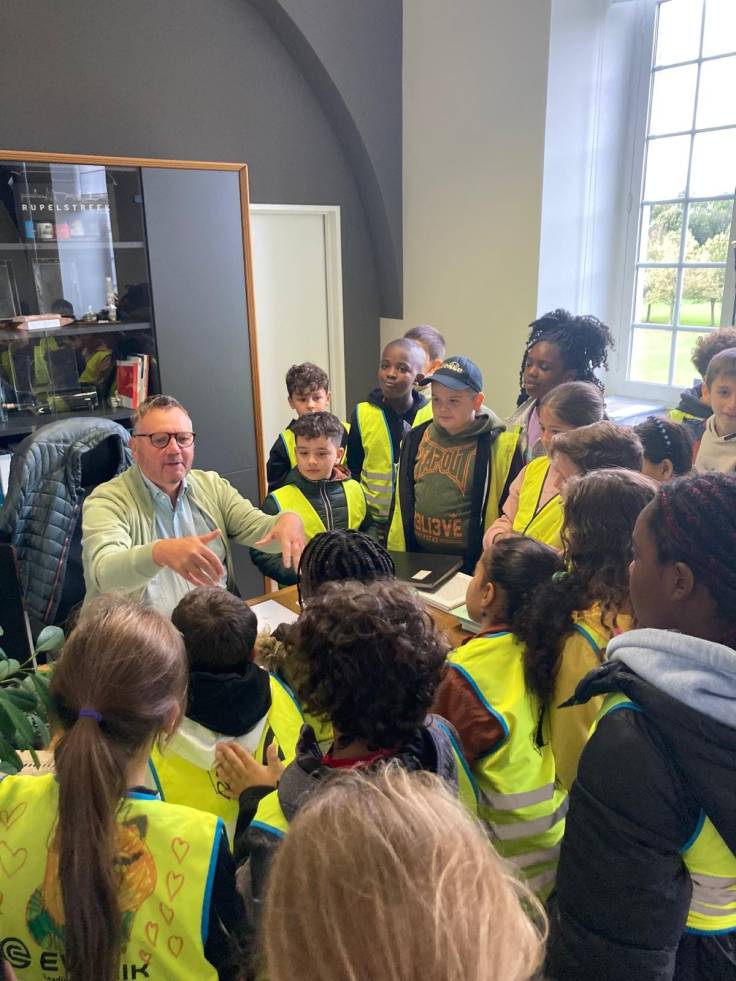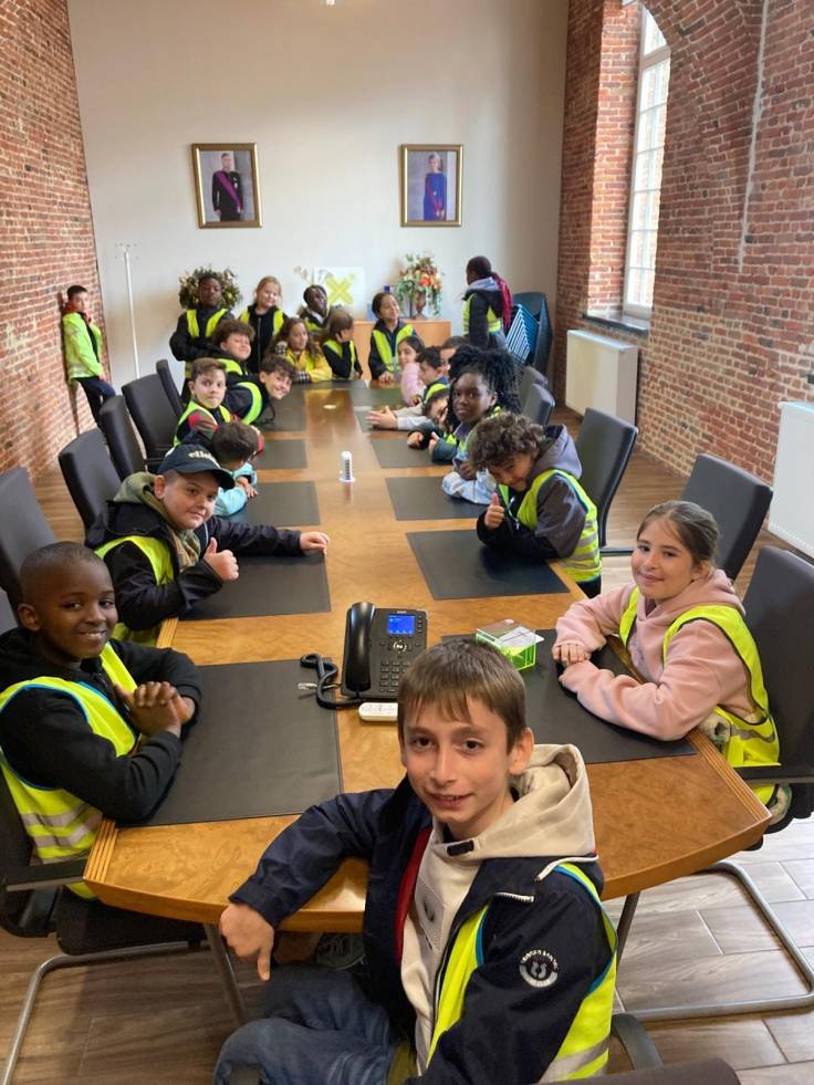 Het vierde leerjaar maakte een wandeling door onze gemeente. Ze kregen een rondleiding op het gemeentehuis en in het tegelmuseum.