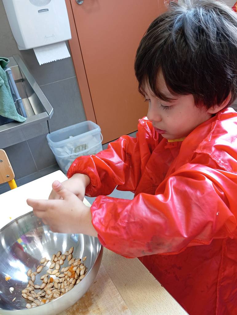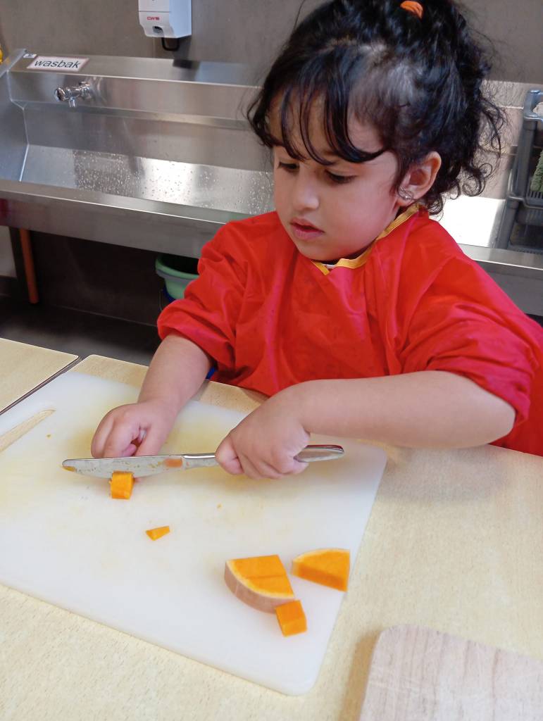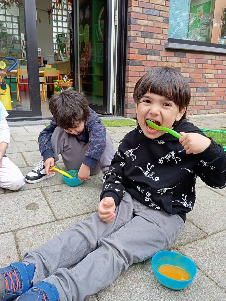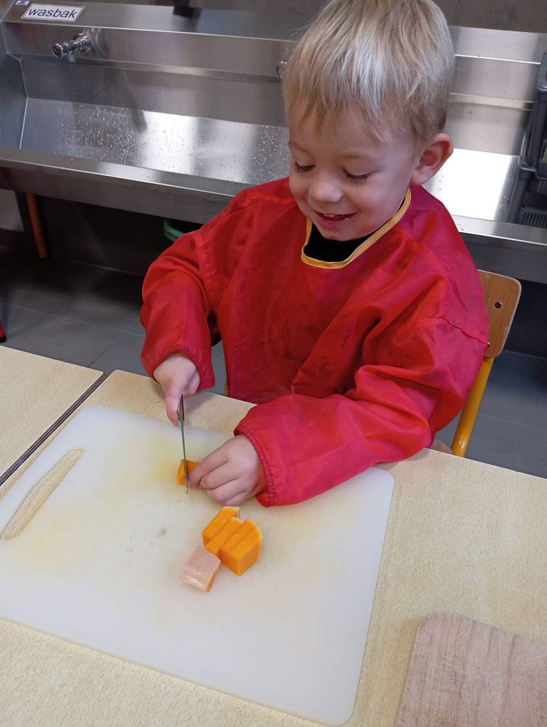 Vorige week maakten de kleuters uit de 2de kk lekkere pompoensoep!