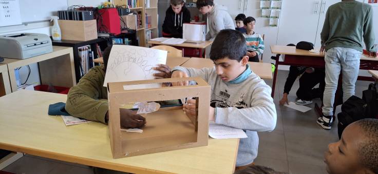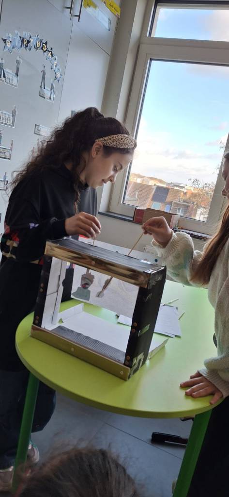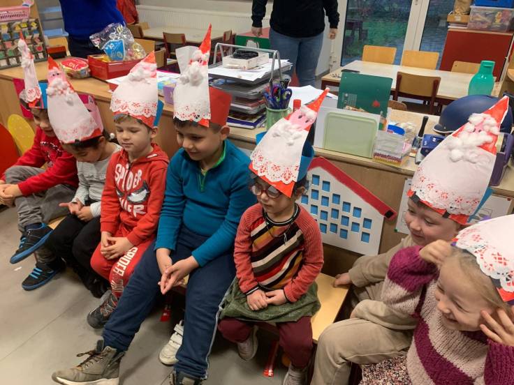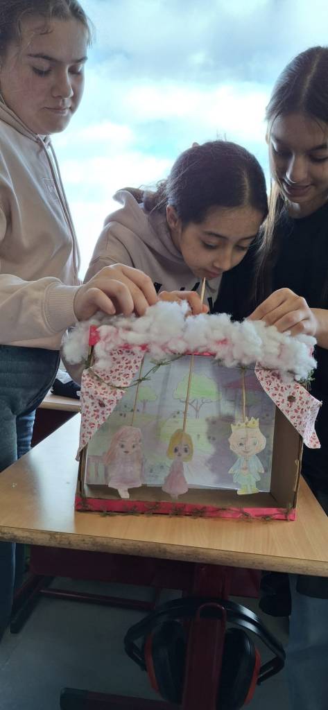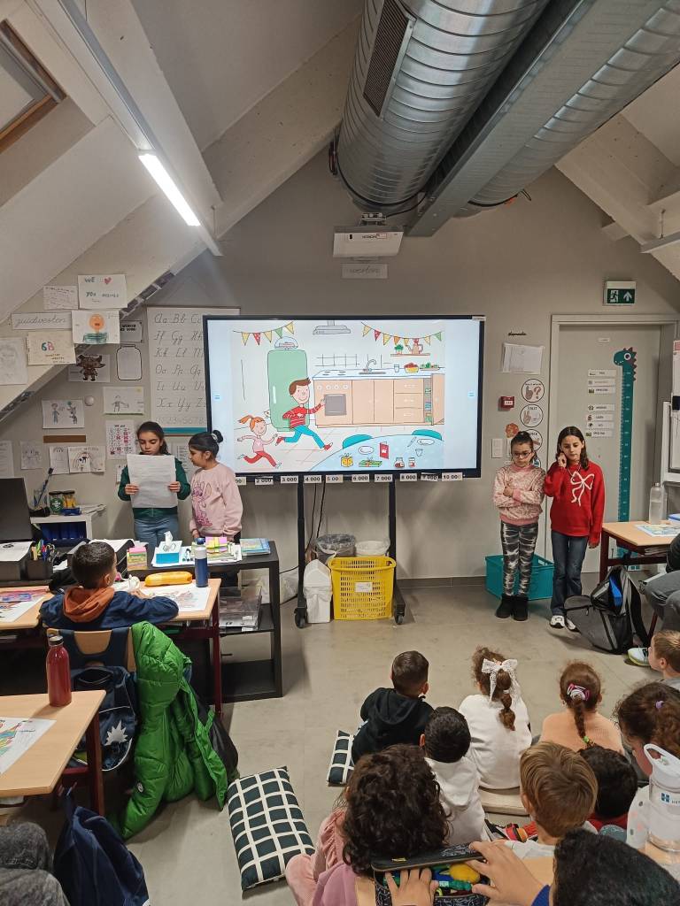 De leerlingen uit het 1ste lj gingen kijken naar de mini poppenkast van de leerlingen uit het 6de lj.