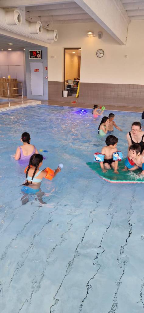 Vandaag gingen de twee klassen van de 3de kleuterklas voor de laatste keer zwemmen!