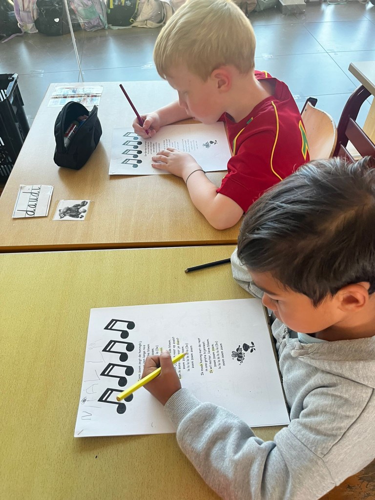 De kinderen van de 3de kk wisselden vandaag van klas met de kinderen van het 1ste leerjaar!