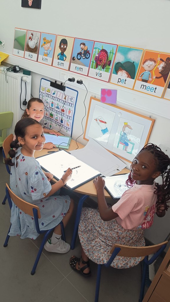 Mooie woorden van juf Nicole: “De anderstalige nieuwkomers begeleiden op hun grote ontdekkingstocht naar onze taal, is voor mij een voorrecht. Voor deze leerlingen, die in hun thuisland hun thuis, familie, vriendjes, huisdieren, … hebben moeten achterlaten, is het een enorme sprong in het onbekende. Als spreekdurf voor je ogen ontluikt, ze eerste woordjes, zinnetjes, lezen en schrijven, ze dan zie glunderen, dan voel ik zoveel bewondering voor hun veerkracht. Heel veel dank aan onze LeeS- Plussers om zich wekelijks in te zetten voor hen.”