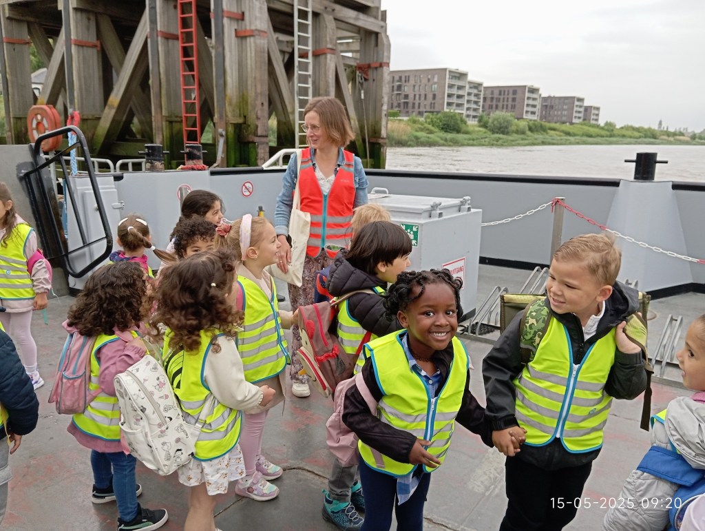 De kikkers en de vissen gingen overzetten met de boot en maakten kennis met de Schelde! Onderweg raapten we het zwerfvuil dat we tegenkwamen op!