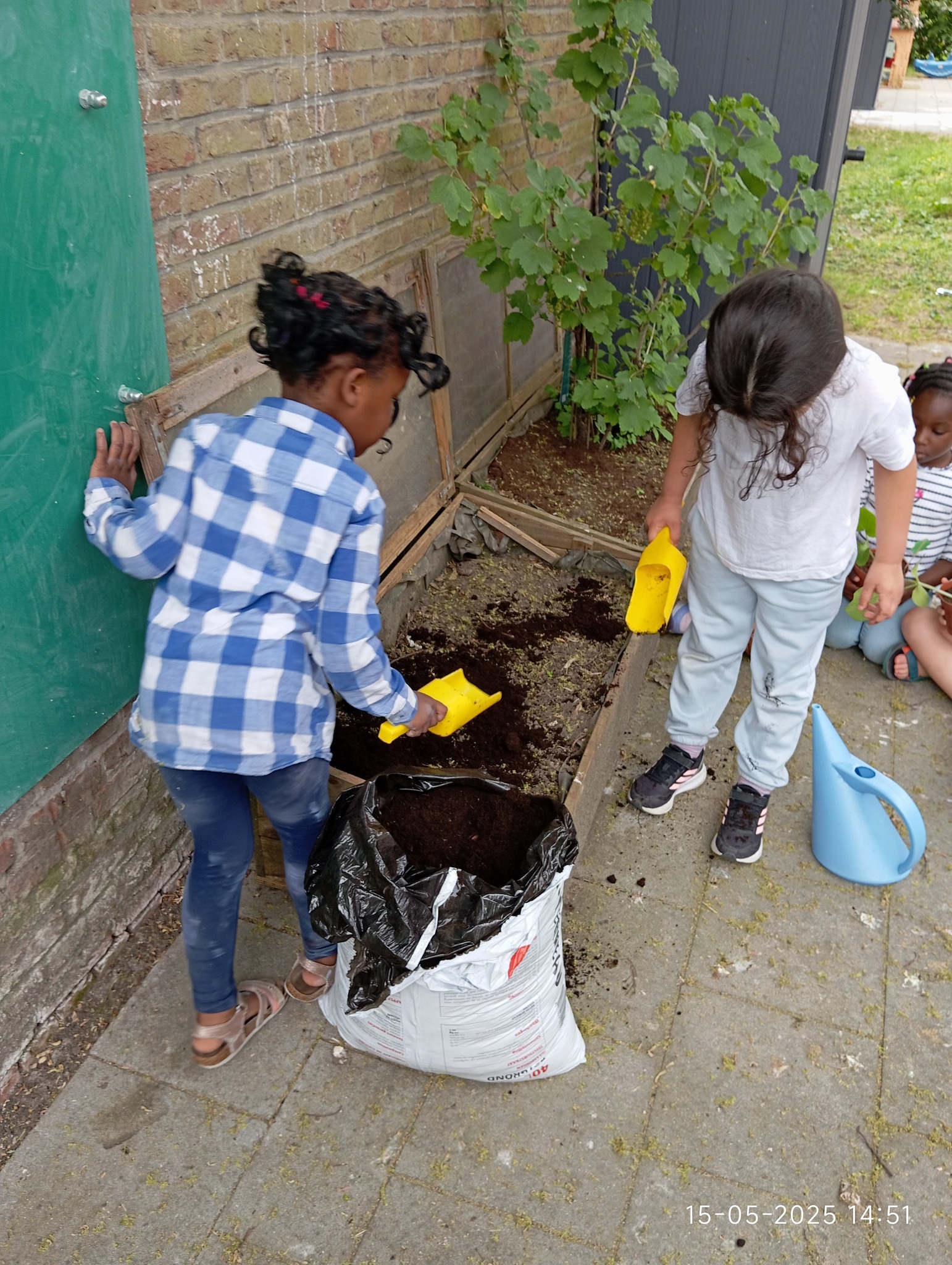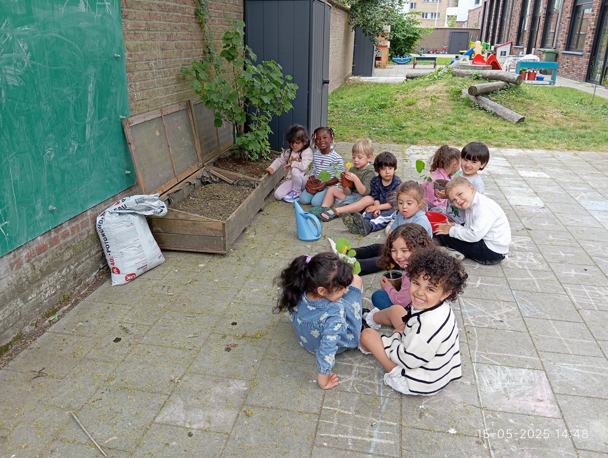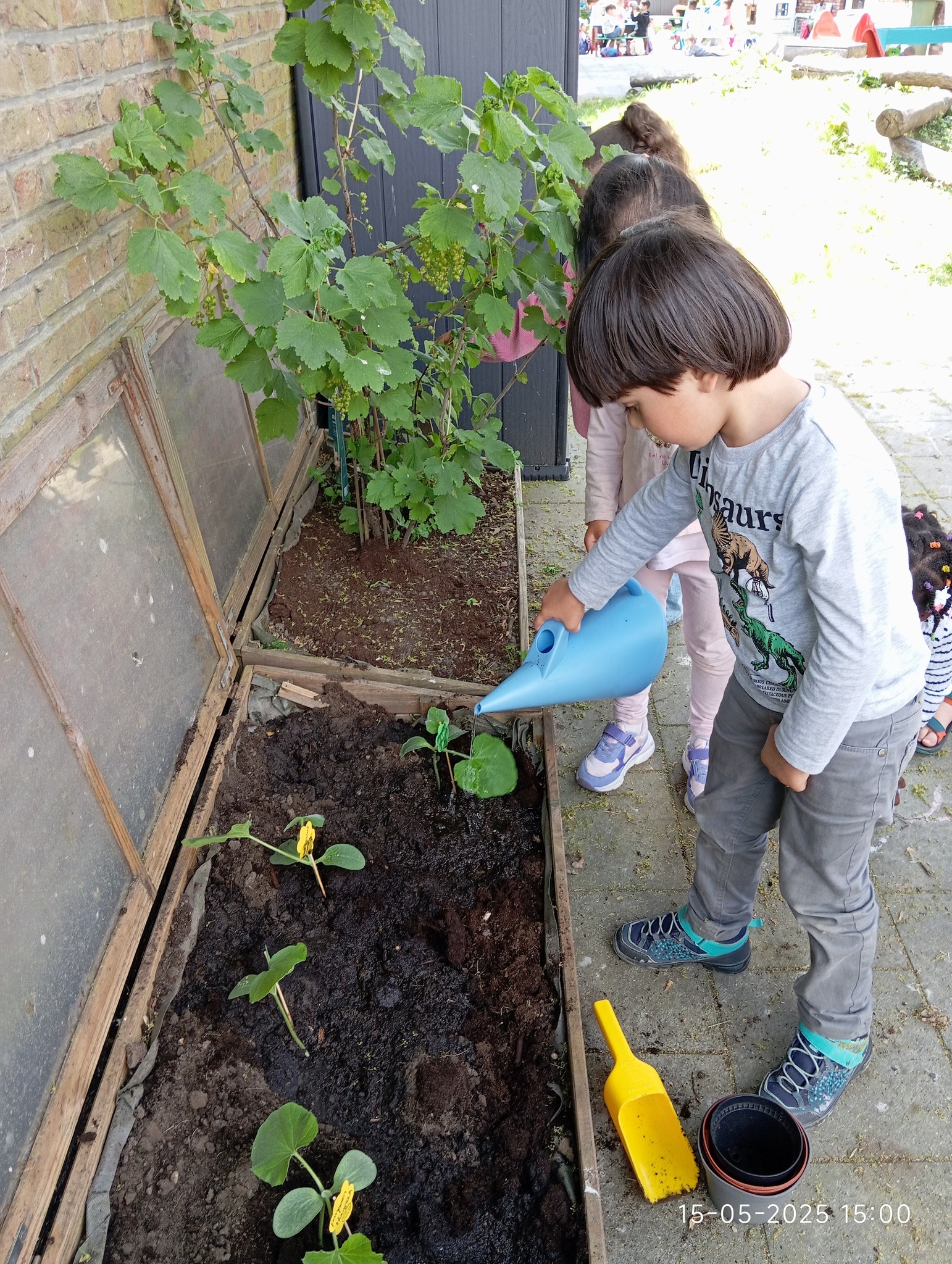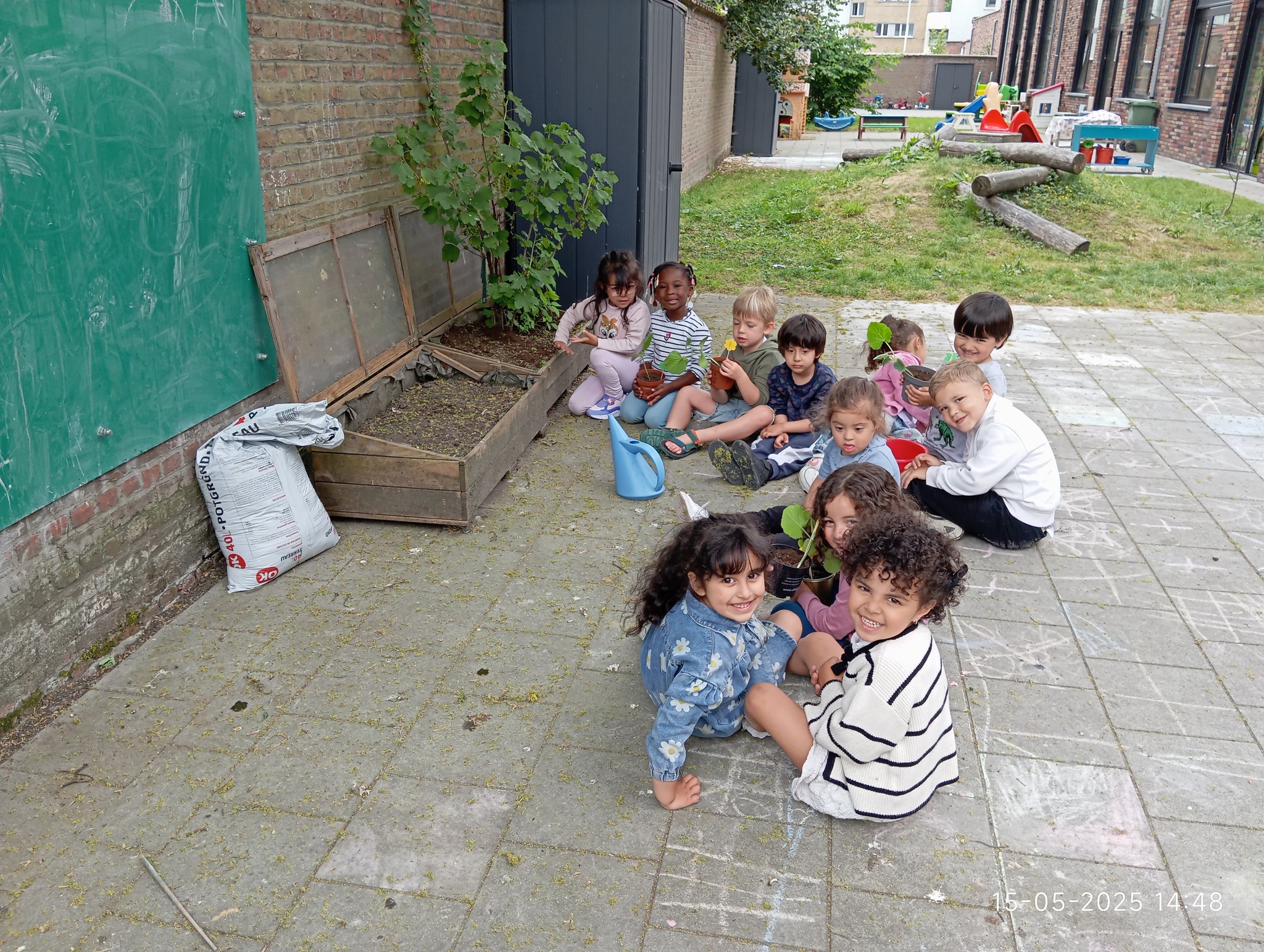 Onze 2de kleuterklas heeft vorige week de plantjes verpot, laat die pompoenen maar groeien!