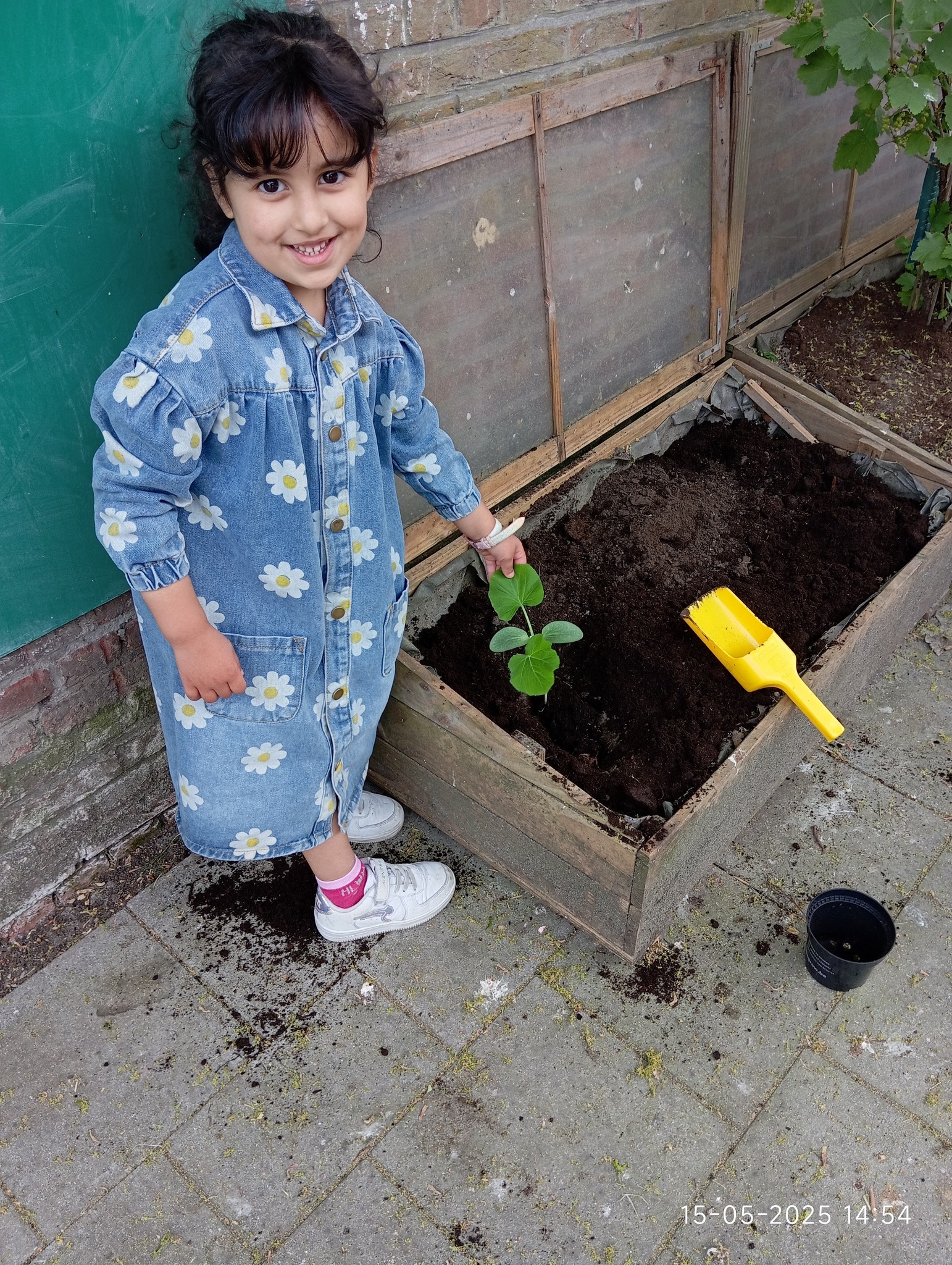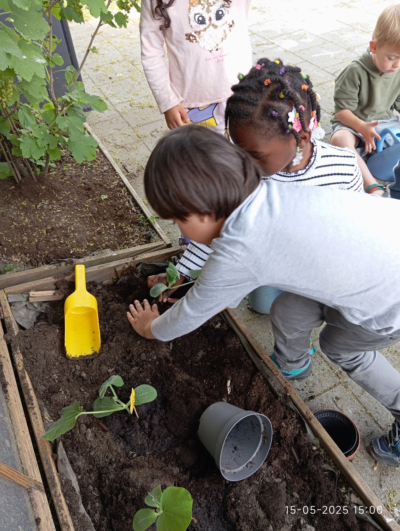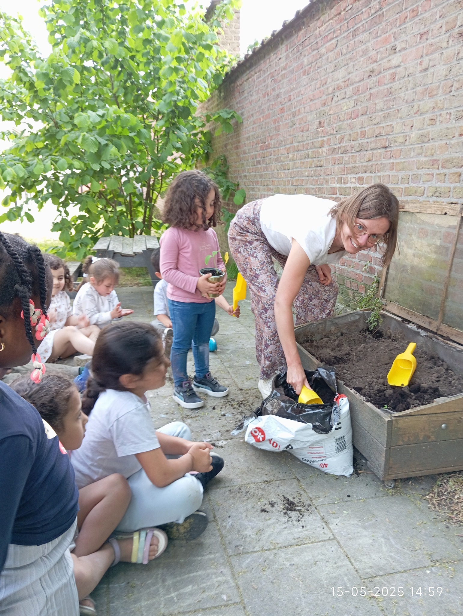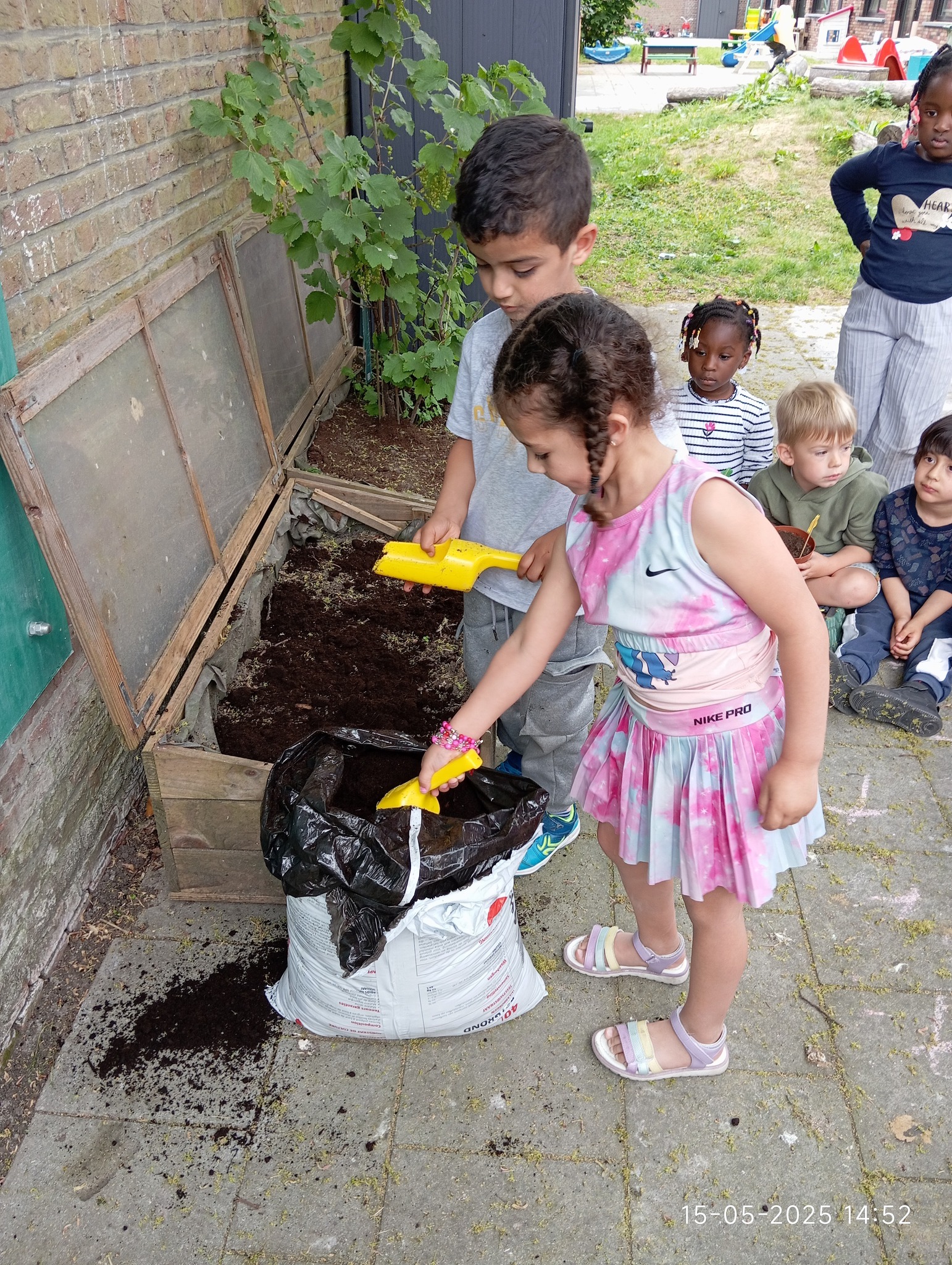 Onze 2de kleuterklas heeft vorige week de plantjes verpot, laat die pompoenen maar groeien!