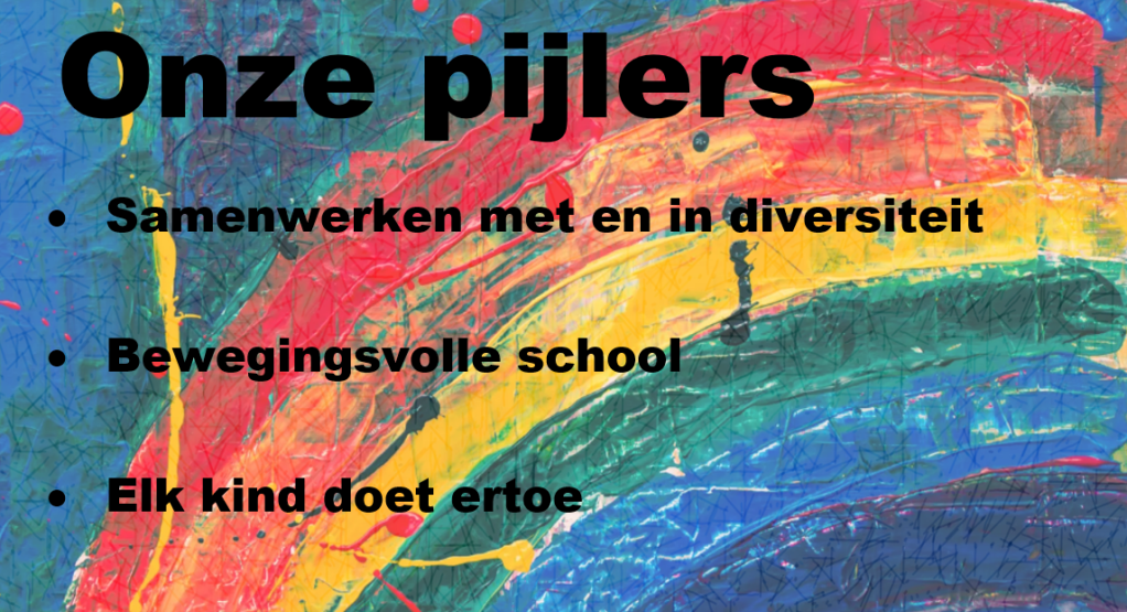 Onze Pijlers Samenwerken met en in diversiteit Bewegingsvolle school Elk kind doet ertoe Dit delen: Klik om te delen op X (Opent in een nieuw venster) X Klik om te delen op Facebook (Opent in een nieuw venster) Facebook Vind-ik-leuk Aan het laden...